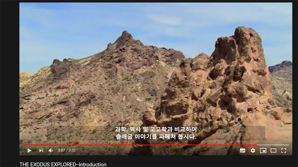 저는 The John 10:10 Project라는 곳에서 무료로 배포한 THE EXODUS EXPLORED (출애굽 증거)를 연재하였는데요, 아쉽게도 한글 자막이 따로 없었어요. [설정]에 가서 [자막]을 [영어]로 선택하고 다시 [자동 번역]을 클릭해서 [한국어]를 선택하면 유튜브 자동 한글 자막이 나오기는 하지만, 한글은 한글인 것 같은데 도무지 이해가 안 됩니다. ㅠㅠ