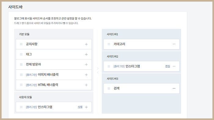 2. 사이드바 설정에서 원하는 모듈 넣기