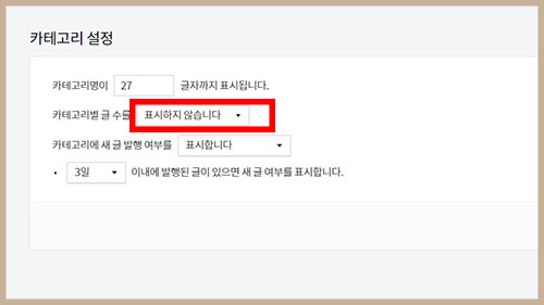 카테고리별 글 수를 [표시하지 않습니다]로 변경합니다.