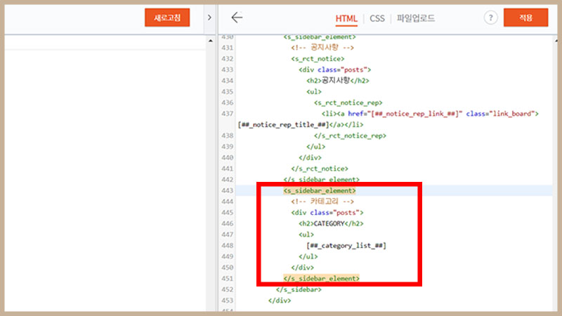 1. html 편집으로 카테고리 리스트 추가