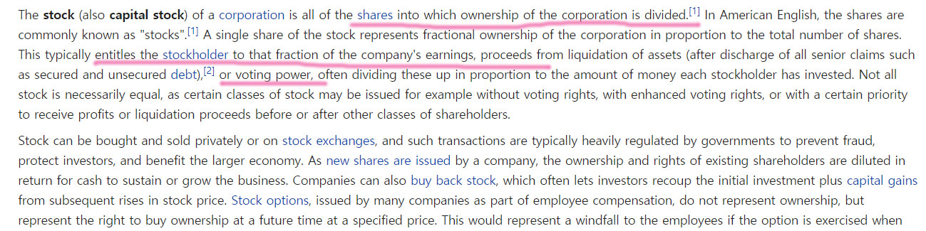 길게 써 있지만 요약하면 ‘회사의 수익에 대한 권리’ 및 ‘투표권’이라고 볼 수 있겠네요.