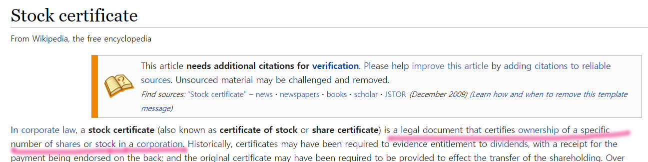 Stock or Share & Share Certificate에 대한 단상 (斷想)