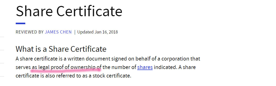 Stock or Share & Share Certificate에 대한 단상 (斷想)
