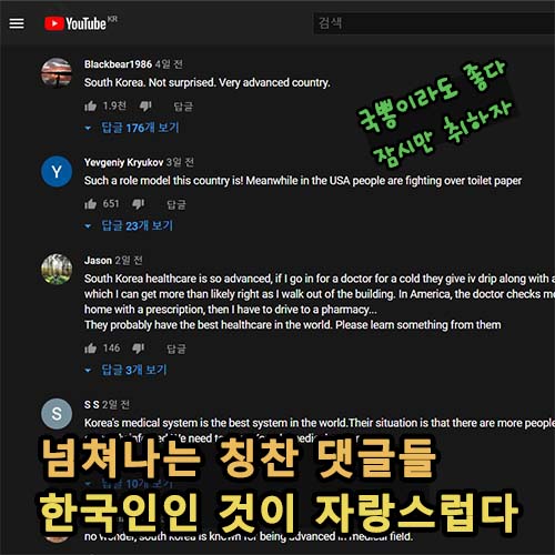 It is within South Korean culture to be community oriented and helpful. They are also big on pressuring their government to be responsible and transparent. South Korea is the best country to be in right now during this crises! Those making rude comments are due to their own inferiority complex and jealousy... (그건 공동체 지향적이고 기꺼이 돕는 한국 문화에 있다. 그들은 또한 정부가 책임감 있고 투명하게 일하도록 압력을 가한다. 지금 이 시국에 한국은 최고의 국가다! 무례한 의견을 제시하는 사람들은 자신의 열등감과 질투 때문이다...)