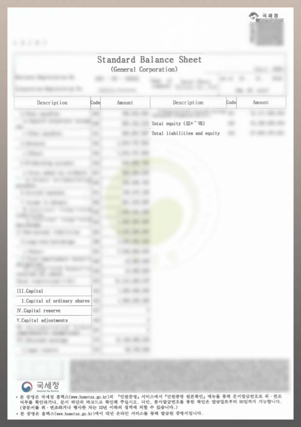 국세청 발행 표준대차대조표를 봐도 Equity가 상위 개념으로 사용된 것을 확인할 수 있습니다.