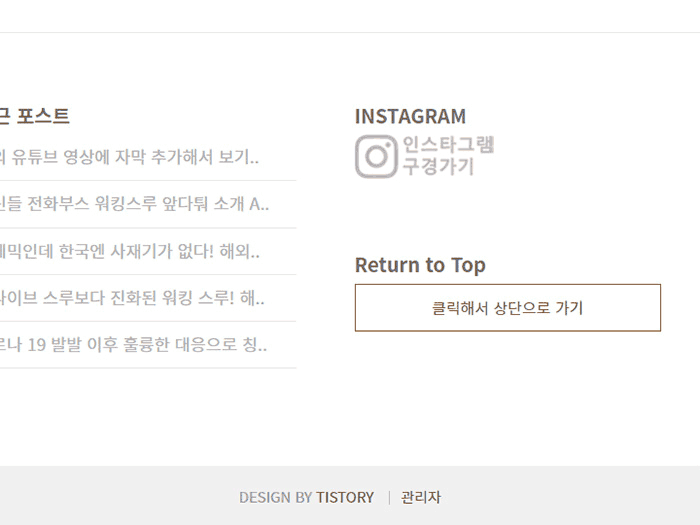 티스토리 하단에 맨 위로 가는 TOP버튼을 만들자 (이미지 파일 필요 없음)