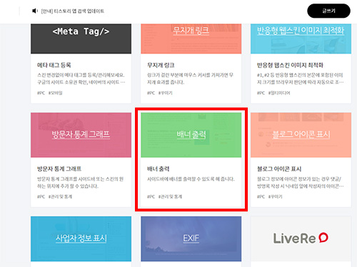 - 플러그인 중에서 [배너출력] 선택 -> 적용