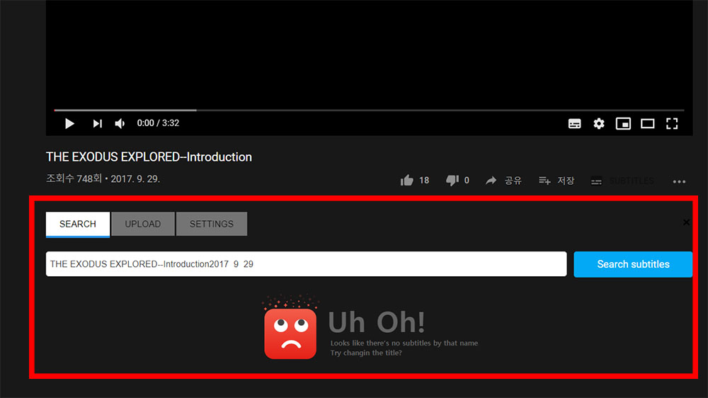 저는 The John 10:10 Project라는 곳에서 무료로 배포한 THE EXODUS EXPLORED (출애굽 증거)를 연재하였는데요, 아쉽게도 한글 자막이 따로 없었어요. [설정]에 가서 [자막]을 [영어]로 선택하고 다시 [자동 번역]을 클릭해서 [한국어]를 선택하면 유튜브 자동 한글 자막이 나오기는 하지만, 한글은 한글인 것 같은데 도무지 이해가 안 됩니다. ㅠㅠ